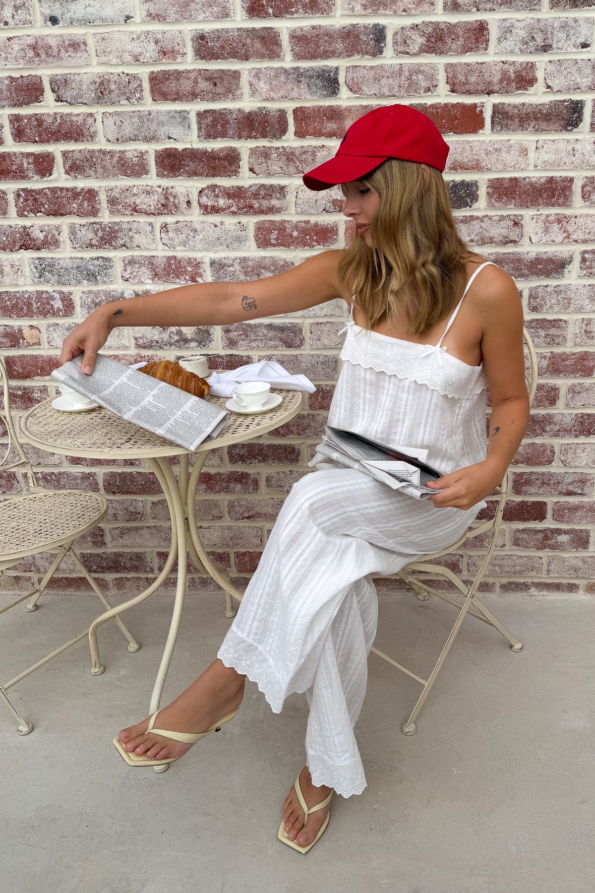 An antique inspired mini dress featuring our signature petite daisy motif trim and a flattering voluminous silhouette. Model wears a size SM.